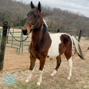 43) CAPER’S TOUGH AS NAILS 22401395 – A BAY TOBIANO son of Ken Worth Caper out of a Chasin White Gold mare. His sire is a brother to the top flat shod show horse Harambe!. He’s ready to start his training and with YOUR direction could be a great Rail or Trail prospect!