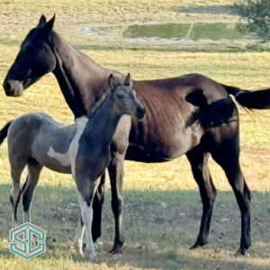 38) PUSHING FOR HONORS 21700910 – A daughter of WGC Honors out of a mare sired by WGC The Pusher C.G. She comes from a show horse producing mare line and she has a new colt by her side sired by Daddy’s Cash! A Beautiful GREY colt born 5/1/2025!! TWO WORDS-DADDY’S CASH!!!