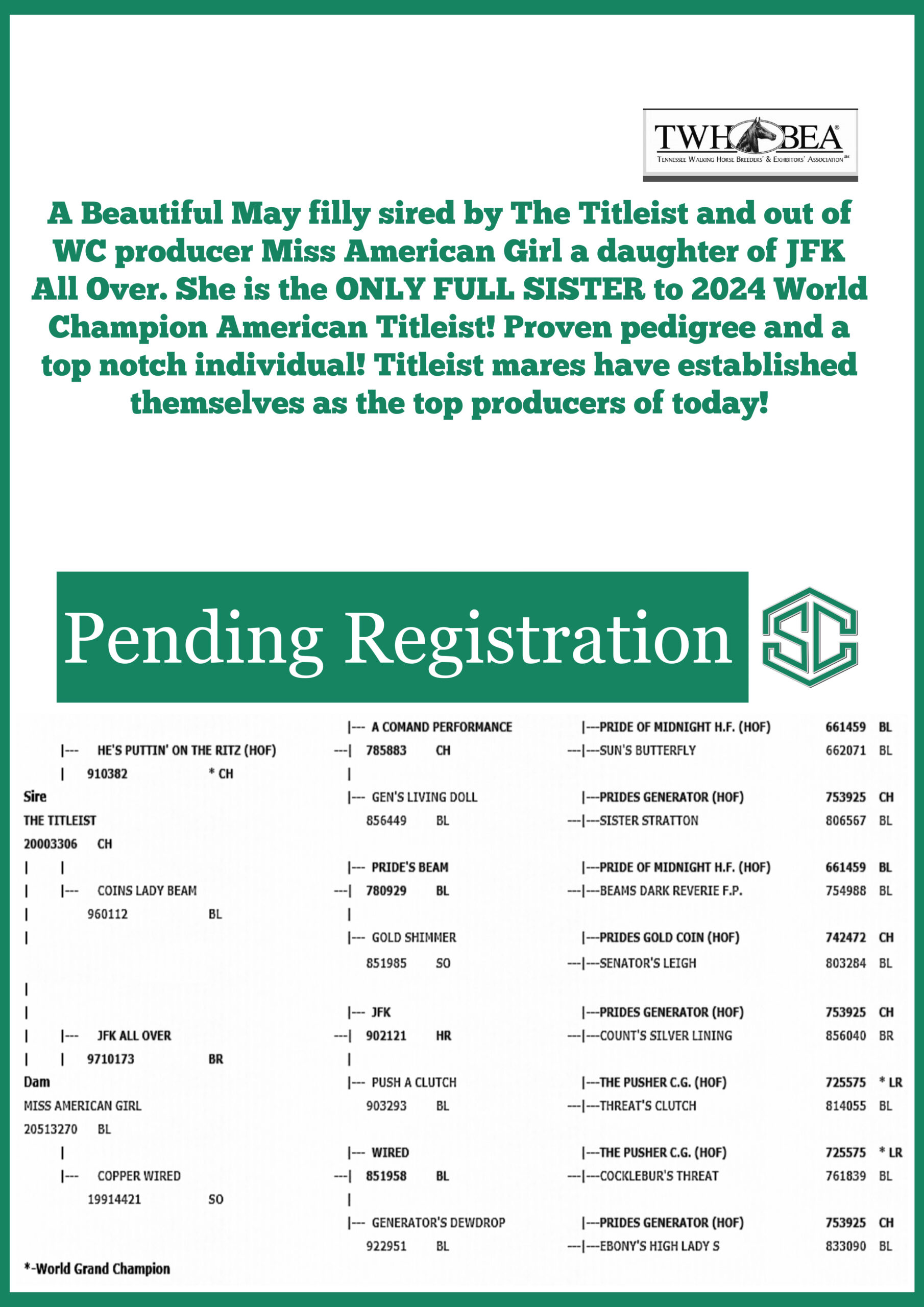 | Photo | Page | A-42 | Dusky Honors | $50,000 |